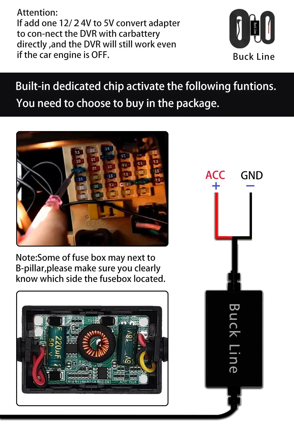 ✔ Parkeermodus 24/7 (met optionele Buck Line-adapter)
