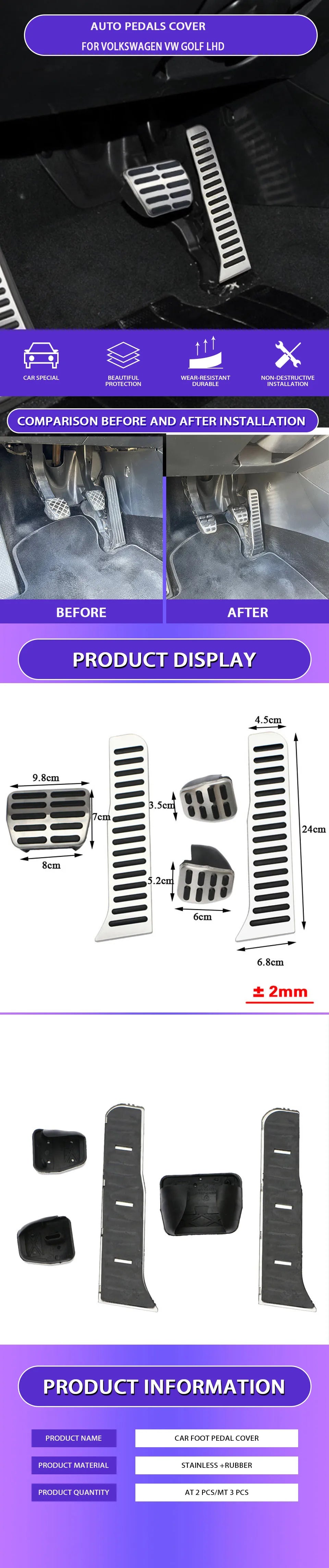 Geef je Volkswagen (Golf 5/6, Passat, Tiguan of Scirocco) een premium look met deze roestvrijstalen pedaalcovers. Speciaal ontworpen voor linksgestuurde modellen (2003-2013), deze set combineert stijl met functionaliteit dankzij het anti-slip rubberoppervlak.