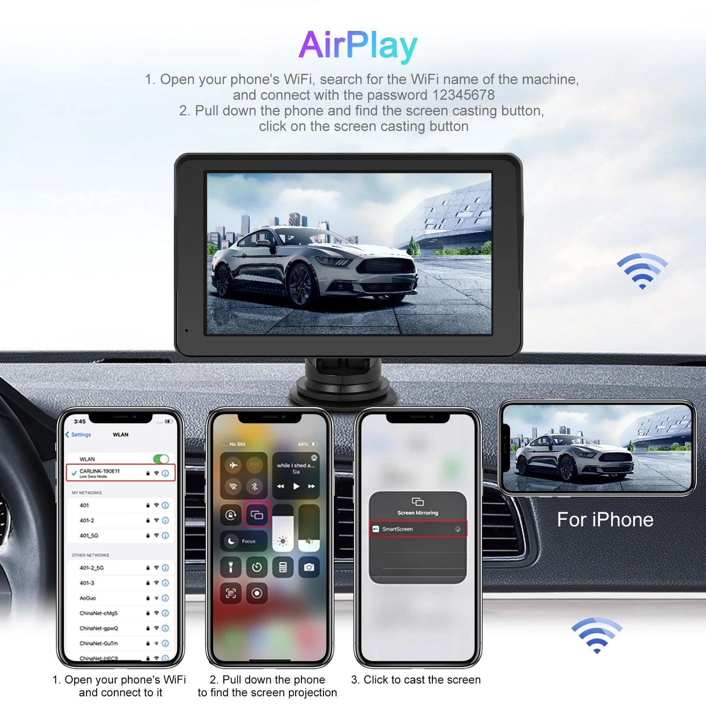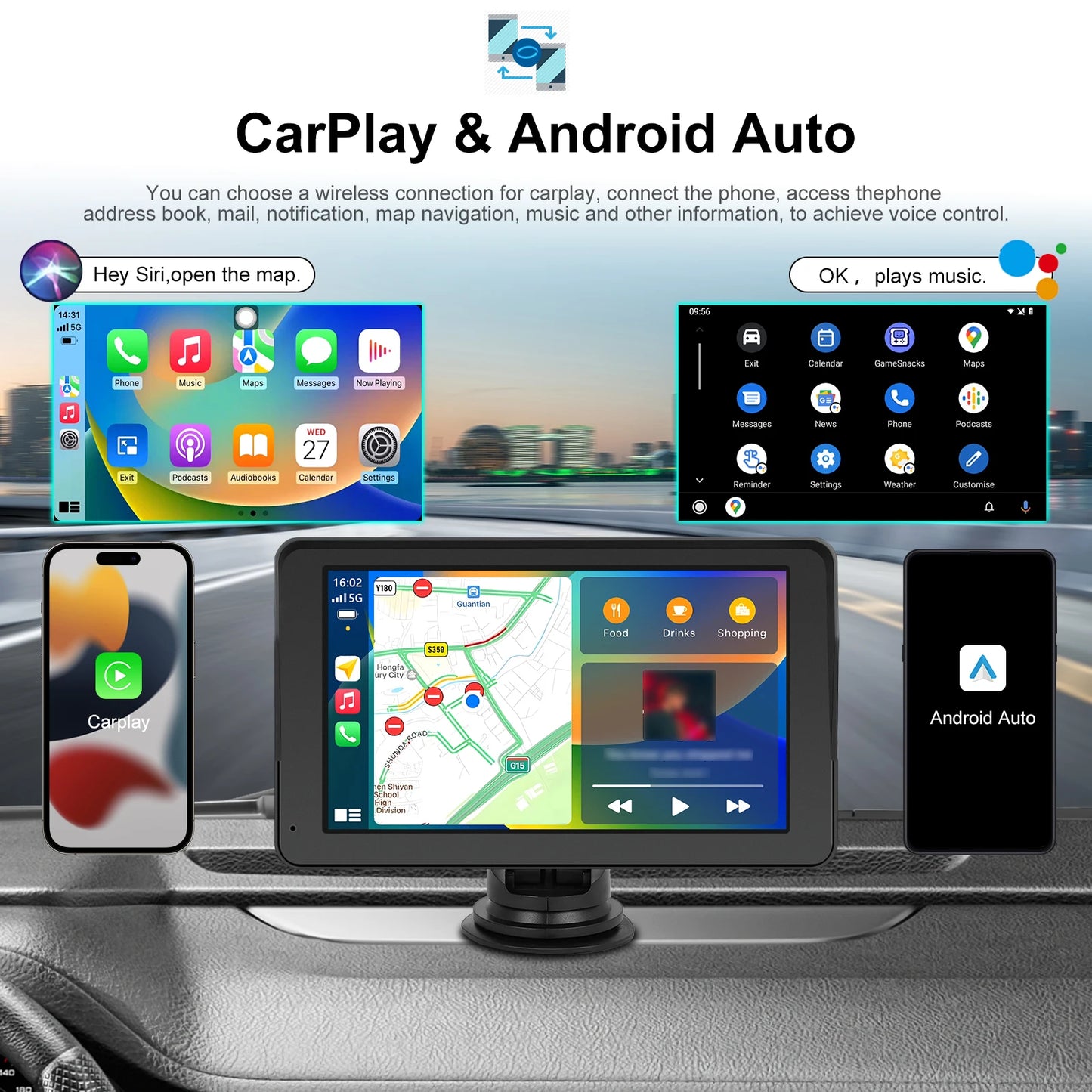 Breng uw autorit naar een hoger niveau met deze draadloze 7-inch CarPlay monitor. Compatibel met zowel Apple CarPlay als Android Auto voor naadloze connectiviteit.