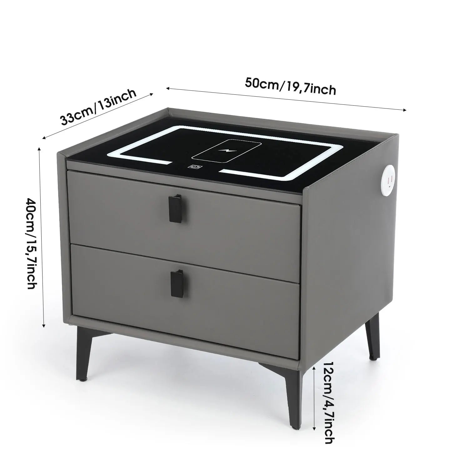 Slimme Nachtkast met Draadloos Opladen – Moderne Design Nachttafel met LED Verlichting & 2 Laden