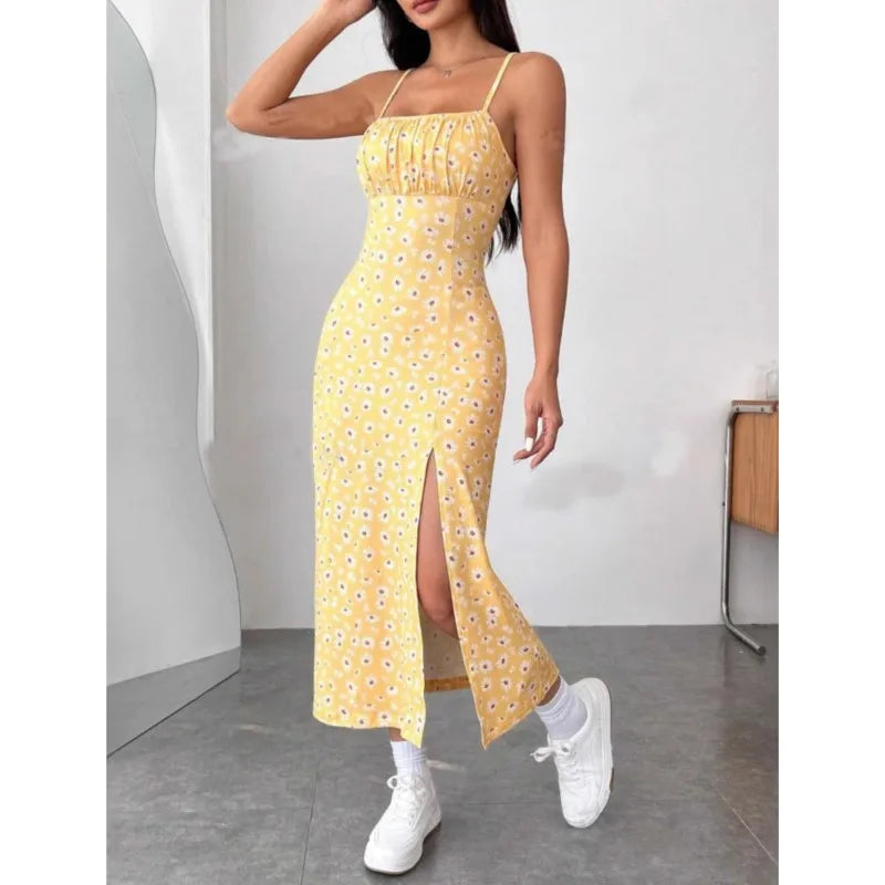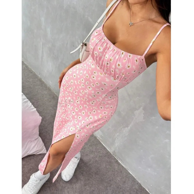 Vintage Zomerjurk met Open Rug & Zijsplit – Stijlvol en Verleidelijk!